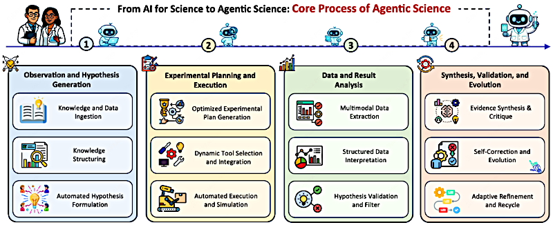 Hace dos días salió este artículo, titulado "De Inteligencia Artificial para Ciencia, a Ciencia Agentiva", que explica cómo se emplean los agentes de Inteligencia Artificial para llevar a cabo descubrimiento científico autónomo.