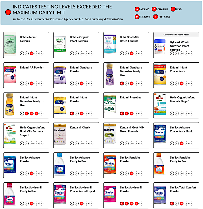 Un informe de seguridad de la iniciativa "Construyendo una Florida más Saludable" identifica altos niveles de sustancias tóxicas en marcas populares de fórmulas infantiles. Análisis de laboratorio independientes revelan que numerosos productos contienen arsénico, cadmio, plomo, mercurio y pesticidas en concentraciones que exceden los límites federales de seguridad. Los datos abarcan una amplia variedad de opciones, incluyendo variedades de leche orgánica, de soya y de cabra de importantes fabricantes como Enfamil, Similac y Bobbie. Este documento sirve como advertencia de salud pública, destacando que muchas fórmulas contaminadas se distribuyen actualmente a través del programa WIC. Al proporcionar tablas de contaminantes detalladas, la organización busca informar a los padres sobre la posible exposición a sustancias químicas en la nutrición infantil temprana. En definitiva, estos hallazgos abogan por estándares de seguridad alimentaria más estrictos para proteger a los bebés vulnerables de las toxinas ambientales dañinas.