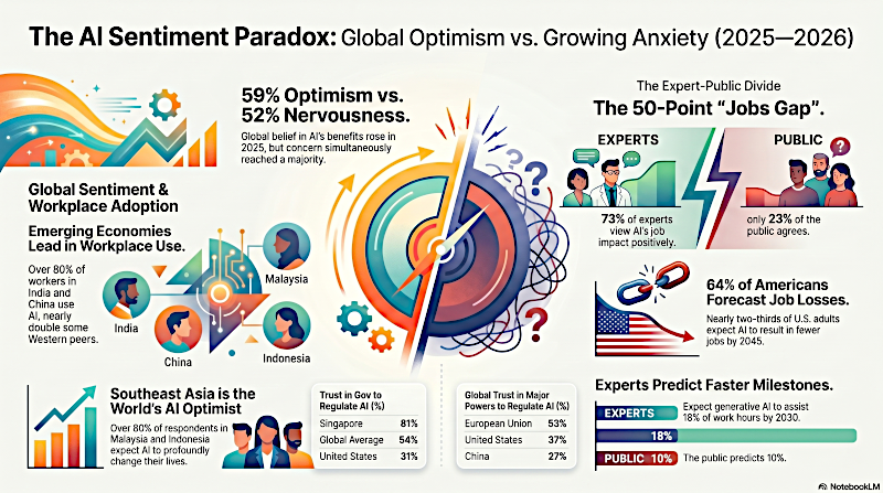 La Paradoja del Sentimiento IA: Optimismo Global vs Ansiedad Creciente (2025-2026)
